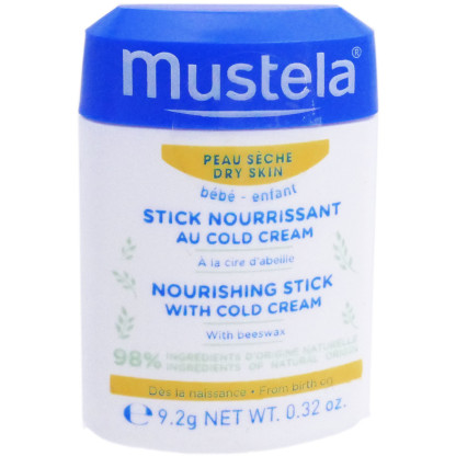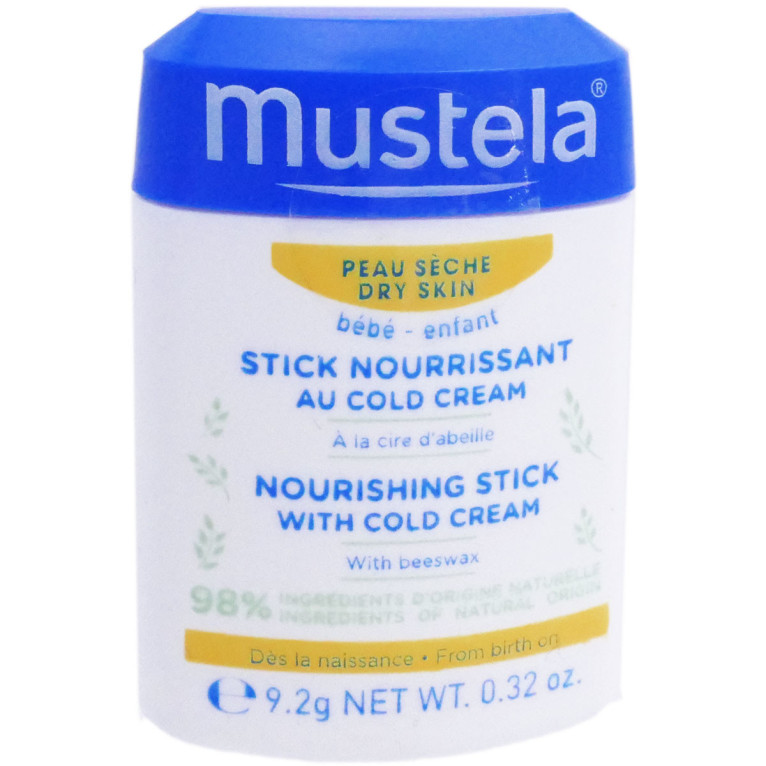 La gamme Bébé Enfant de MUSTELA est composée de produits à base d’ingrédients très doux d’origine naturelle hypoallergéniques, sans paraben, sans phtalate ni phenoxyethanol pour le plus grand respect des cheveux et de la peau fragiles des tout-petits dès la naissance. Le Stick nourrissant au cold cream nourrit, protège et restructure en reformant et renforçant le film protecteur de l’épiderme fragile, préserve la richesse cellulaire de la peau, nourrit, hydrate et apaise de tout inconfort. Sa formule haute tolérance à 98% d'ingrédients d'origine naturelle à base de cire d'abeille permet de ne pas irriter la peau ni la dessécher. Sa texture riche pénètre rapidement à l’application sans laisser de film gras sur la peau. Pratique par son format en stick, ce soin s’utilise facilement et s’emporte partout avec soi pour une application à tout moment sur la peau de bébé. Après le soin, la peau de bébé est délicatement parfumée, douce, souple et retrouve tout son confort.