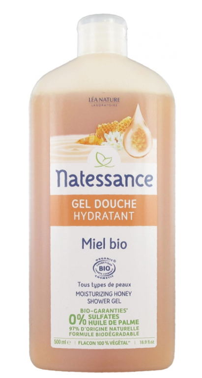La marque NATESSANCE offre des produits de soin composés d’ingrédients issus de filières bio équitables, respectueuses de l’homme et de son environnement, afin d’offrir le meilleur de la nature à toute la famille. Tous les produits NATESSANCE sont exempts de substance nocive pour la santé. Ils procurent soin et plaisirs à chaque membre de la famille, nourrissons, enfants et adultes grâce à un choix de produits adaptés spécifiquement aux besoins de chacun. La gamme gels douche propose des produits formulés avec une base lavante 100% d’origine naturelle.Ce gel douche à base de miel permet de nettoyer et d'hydrater la peau avec une extrême douceur tout en respectant l’équilibre cutané. Le gel douche au miel bio développe une mousse généreuse au contact de l’eau et enveloppe la peau d’un doux parfum . Sans sulfate.