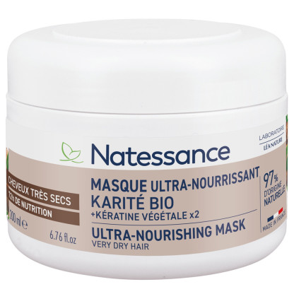 NATESSANCE MASQUE ULTRA-NOURISSANT KARITE BIO 200ML est en vente en ligne sur le site de votre parapharmacie à prix discount, offrant un soin capillaire intensif pour les cheveux secs et fragilisés.