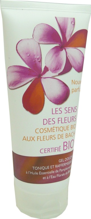 Depuis 1996, la marque « les Sens des Fleurs » développe des produits de soin qui associent les vertus de la cosmétique bio aux pouvoirs fascinant des fleurs de Bach sur l’équilibre émotionnel. La gamme soins corps propose des produits délicats, certifiés bio, spécialement conçus pour offrir douceur, confort et plaisir des sens au corps et à l’esprit. Le gel douche tonique et raffermissant « Les Sens des Fleurs », est spécialement conçu pour laver la peau en douceur, respecter son équilibre, dynamiser l’épiderme et vivifier l’esprit. Sa base lavante d’origine végétale à l’amande douce est enrichie en huile essentielle de pamplemousse et eau florale de Bleuet pour tonifier et raffermir intensément l’épiderme. Ce gel douche est également composé de fleurs de Bach bio (charme, Ajonc, Eglantine et Olivier) judicieusement sélectionnées pour accompagner les femmes dans leur quête de joie, fraîcheur et énergie de l’esprit.