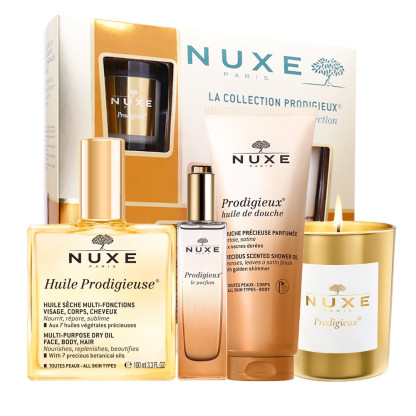 NUXE COFFRET "La Collection Prodigieux" 3 SOINS + BOUGIE : en vente en ligne, sur le site de votre parapharmacie à prix discount, vous invite à découvrir l'essence même de la beauté et du bien-être.