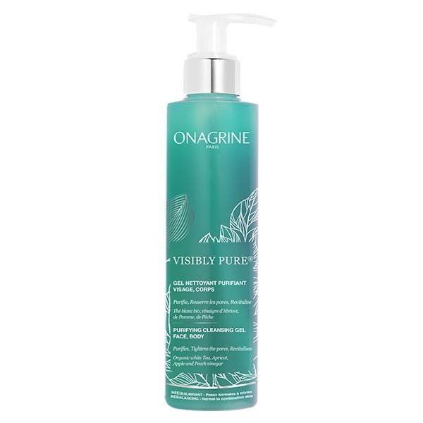 La gamme Visibly Pure d'ONAGRINE est composée de soins à base d'ingrédients naturels pour nettoyer, purifier et redonner de l'éclat aux peaux mixtes du visage et/ou du corps. Le gel nettoyant et purifiant Visibly Pure nettoie la peau en éliminant le sébum en trop grande quantité dans l’épiderme et toutes les impuretés, purifie la peau pour la rendre nette et redonne de la clarté au teint. Sa texture gel laissera la peau fraîche après le soin. Dès la première utilisation, la peau est nette, fraîche et purifiée, le teint retrouve son éclat.