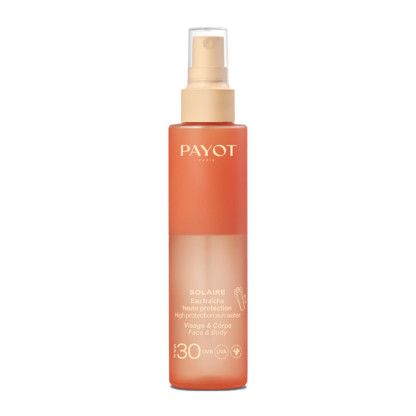 Payot Solaire Eau Fraiche Haute Protection SPF30 150ml en vente en ligne sur le site de votre parapharmacie à prix discount. Protégez votre peau des rayons UV avec cette eau fraiche haute protection SPF30 de la marque Payot. Visage et corps