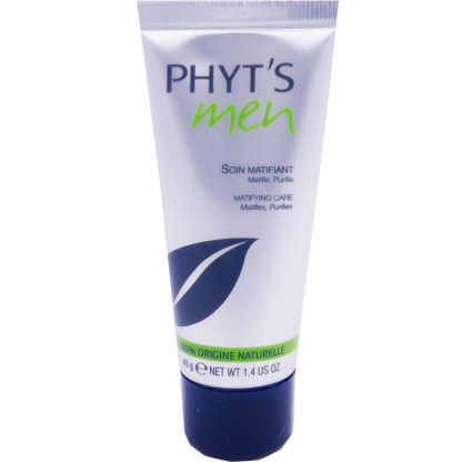 Depuis 48 ans, les Laboratoires Phyt’s sont dépositaires d’un savoir-faire d’exception pour offrir à votre visage et à votre corps des cosmétiques certifiés bio, des produits de beauté composés à 100% d’ingrédients naturels. Disponibles dans votre spa ou votre institut de beauté, les soins Bio-Cosmétique Active de Phyt's révèlent votre beauté originelle et naturelle. Ultra-léger et non-gras, la crème matifiante bio, Phyt's Men pénètre rapidement et aide à lutter contre les inconvénients de l'excès de sébum. Elle est riche en huiles essentielles de Tea tree, de Palmarosa et de Thym, purifiante et astringentes, cette crème pour peau grasse matifie et lutte contre les imperfections cutanées.