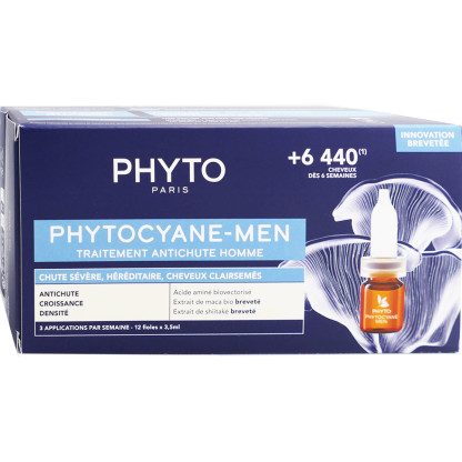 PHYTOCYANE MEN TRAITEMENT ANTICHUTE SEVERE 12 FIOLES en vente en ligne, sur le site de votre parapharmacie à prix discount. Découvrez le traitement antichute sévère PhytoCyane Men, spécialement conçu pour les hommes souffrant de chute de cheveux importante.