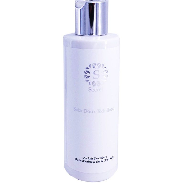 Soin Doux Exfoliant est un soin gommant riche en lait de chèvre, de Gotu Kola (plante médicinale), et huile d’arbre à thé pour nettoyer tout en douceur et en profondeur la peau, l’illuminer comme une peau neuve ! Ce soin gommant élimine toutes les impuretés et l’excès de sébum, active le renouvellement cellulaire cutané, affine le grain de peau en désincrustant les pores de l’épiderme tout en douceur, et la lisse. Après le soin, le grain de peau est affiné, la peau est nette et lumineuse comme neuve ; le teint est éclatant.