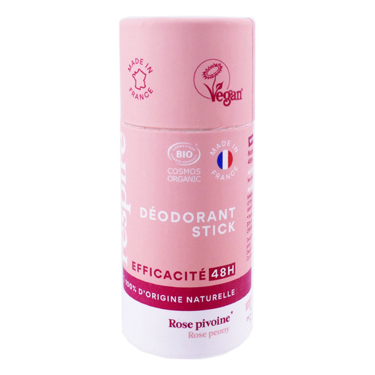 Le déodorant stick bio Rose pivoine est issu du laboratoire RESPIRE, spécialisé dans les produits cosmétiques naturels. Sa formule unique associe des ingrédients d'origine naturelle pour neutraliser les odeurs et absorber l'humidité. Il est formulé à base d'Oxyde de Magnesium et Triethyle Citrate qui permettent de lutter contre les mauvaises odeurs ainsi que de l'Huile de Tournesol qui assure le confort de la peau pendant l'application. Ce déodorant respecte votre peau grâce à sa composition sans sels d'aluminium et sans alcool. Il convient parfaitement aux peaux sensibles et réactives. Sa texture douce et non collante glisse facilement sur la peau pour une application agréable et confortable. Le déodorant stick bio Rose pivoine offre une protection longue durée jusqu'à 48 heures, vous permettant de rester frais et confiant tout au long de la journée. Son parfum délicat floral vous enveloppe d'une sensation de fraîcheur subtile et agréable. De plus son petit format vous permet de l'amener partout avec vous. Optez pour ce déodorant stick bio RESPIRE et profitez d'une protection efficace et respectueuse de votre peau, tout en contribuant à préserver l'environnement. Commandez-le dès maintenant sur notre site de vente en ligne et bénéficiez de notre prix discount.