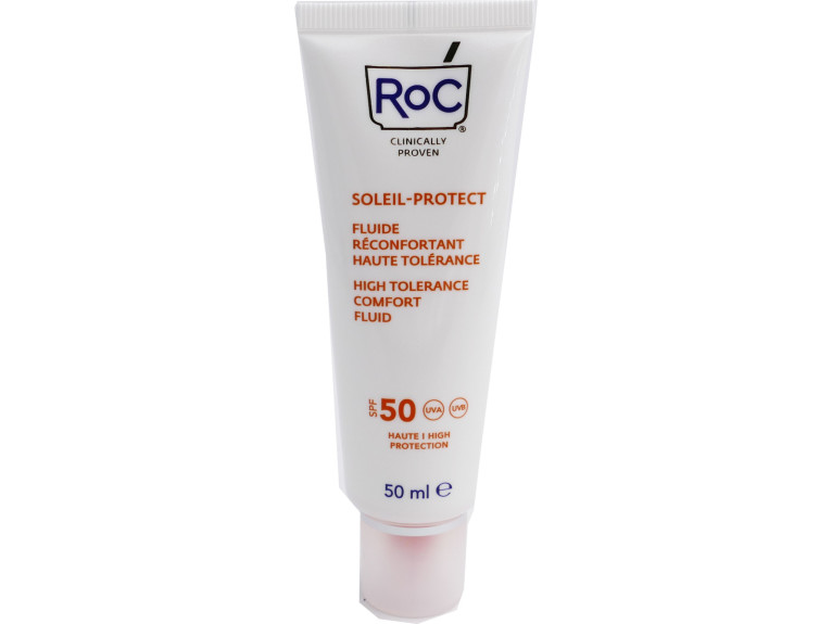 Le Fluide Réconfortant Haute tolérance SPF50 SOLEIL PROTECT discount de ROC, une très haute protection qui protège très efficacement (SPF50) les peaux sensibles du soleil, dans votre parapharmacie en ligne à prix discount.