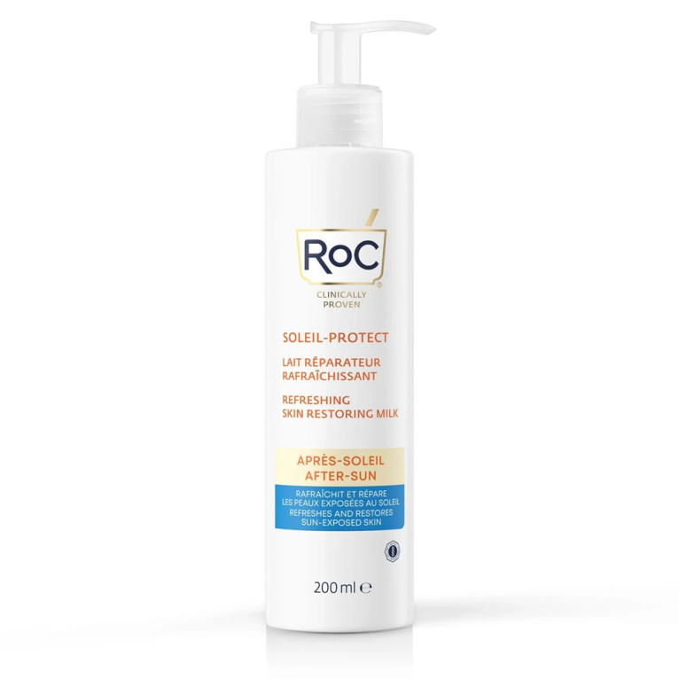Depuis plus de 50 ans, RoC développe des produits dermo-cosmétiques de haute qualité, qui agissent autant sur les causes des désordres cutanés que sur leurs effets, grâce à des technologies toujours plus innovantes, pour offrir à toutes les femmes le pouvoir de rester belles. La gamme Soins Solaires propose un large choix de soins visages et corps aux formules haute-performance pour protéger efficacement la peau du photo-vieillissement. Enrichi en vitamine E et Aloe vera, le Lait réparateur rafraîchissant après-soleil va réparer la peau agressée par l’exposition au soleil, la protéger du photovieillissement, hydrater intensément et apaiser durablement. Sa texture qui fond à l’application sans laisser de film gras laissera sur la peau une fraîcheur pour un apaisement instantané. Après le soin, la peau est lisse et douce.