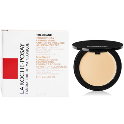 Depuis plus de 30 ans, le laboratoire LA ROCHE POSAY développe des produits dermo-cosmétiques élaborés avec de l’eau thermale de LA ROCHE POSAY riche en Sélénium aux propriétés anti-radicalaires, pour répondre à tous les besoins des peaux même les plus fragiles. La gamme TOLERIANE TEINT propose des soins à haut pouvoir correctif pour assurer un teint uniforme et naturel, dans le plus grand respect des épidermes sensibles. TOLERIANE TEINT MINERAL, à la texture poudre compacte facilement modulable grâce à l’éponge douce, permet de couvrir en toute légèreté les imperfections des peaux sensibles normales à mixtes, et unifier le teint sans obstruer les pores. Formule haute tolérance enrichie d’un filtre protecteur SPF 25, sans conservateur, non comédogène.