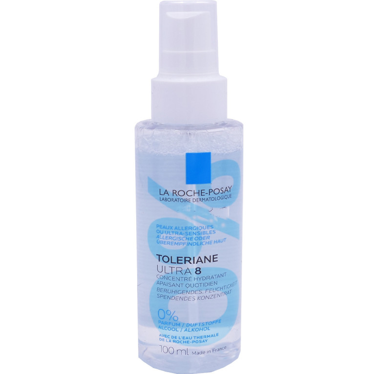 La gamme Tolériane de LA ROCHE POSAY est composée de soins quotidiens à base d'un minimum d'ingrédients pour les peaux intolérantes, sensibles et allergiques. Tolériane Ultra 8 est un soin composé de 8 ingrédients essentiels pour l’hydratation, dont des actifs apaisants, glycérine et allantoïne, et de l’Eau thermale de La Roche Posay, qui renforce le film protecteur de l’épiderme en ciblant la cause des irritations cutanées, hydrate intensément la peau et apaise pour lui redonner tout son confort et sa douceur. Sa brume très légère et fraîche redonne une grande douceur et du confort. Non comédogène. Testé sur peau allergique sous contrôle dermatologique et ophtalmologique. Convient au contour de l’œil. Sans parfum, sans alcool.