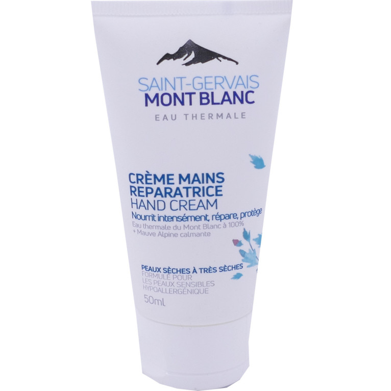 Le laboratoire SAINT-GERVAIS développe des produits dermo-cosmétiques élaborés avec de l’eau thermale de SAINT-GERVAIS Mont Blanc du massif alpin riche en minéraux aux propriétés réparatrices apaisantes, et cicatrisantes, pour répondre à tous les besoins des peaux même les plus fragiles. Saint-Gervais Mont Blanc Crème Mains Réparatrice est un soin formulé pour les mains sèches à très sèches. Sa composition à base de Mauve Alpine aux vertus apaisante, va protéger durablement la peau des agressions extérieures (froid, vent…). La peau des mains est intensément hydratée, plus douce et retrouve son équilibre enveloppé d’un film protecteur non gras pour une protection en continue…Une crème fabriquée en France, hypoallergénique qui respecte l’épiderme.