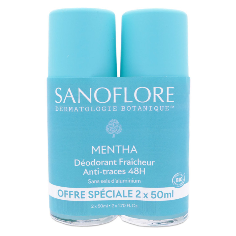 SANOFLORE BIO DÉODORANT FRAICHEUR MENTHA LOT DE 2X50ML est disponible en vente en ligne à prix discount sur Pharmashopdiscount.