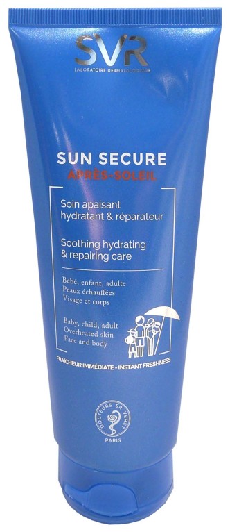 SUN SECURE Après-soleil de SVR, le soin apaisant après-soleil hydratant et réparateur pour apaiser après le bain de soleil. visage et corps de toute la famille
