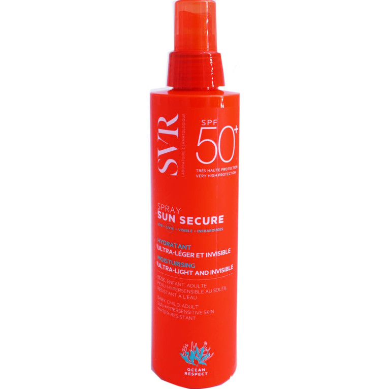 SUN SECURE Spray SPF50+ discount de SVR pour la très haute protection solaire à prix discount dans votre parapharmacie en ligne, du visage et du corps. Peaux hypersensibles de toute la famille (à partir de 3 ans)