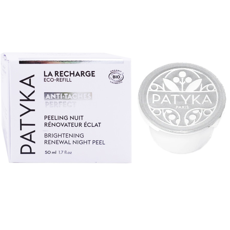La Recharge ANTI-TACHES PERFECT Peeling Nuit Rénovateur Eclat discount de PATYKA, un soin douceur aux extraits naturels bio, pour agir sur les taches pigmentaires et la clarté du teint dans votre parapharmacie à prix discount. Visage Tous types de peaux. La recharge du soin Peeling Nuit Rénovateur Eclat ANTI-TACHES PERFECT