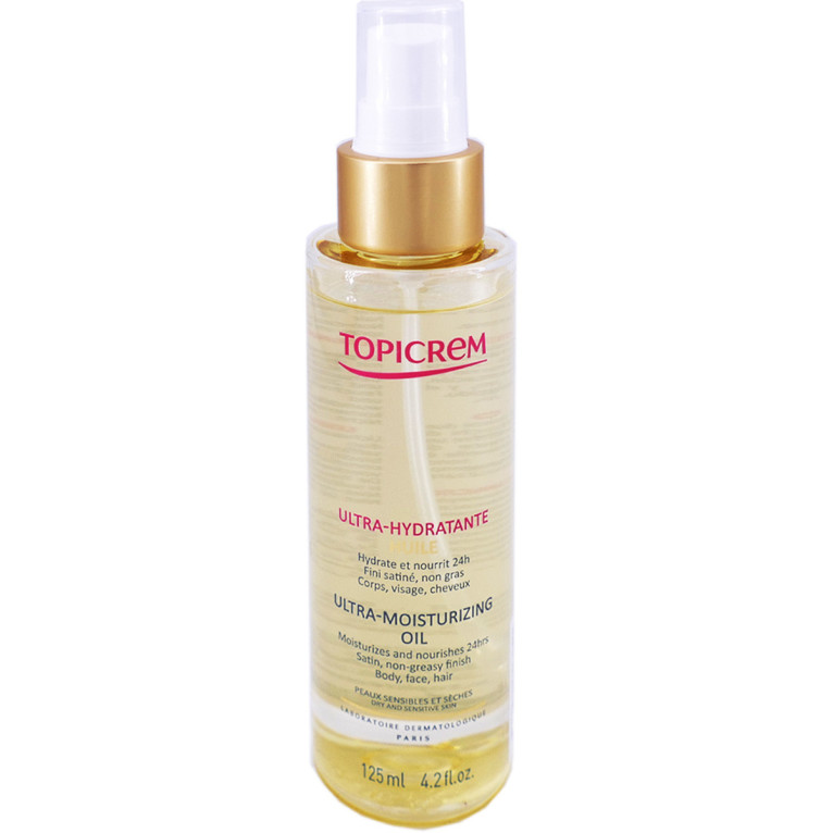 Ultra-Hydratant Huile discount de TOPICREM, Le soin visage corps et cheveux dans votre parapharmacie en ligne à prix discount, pour hydrater en profondeur les peaux sèches et sensibles, le cuir chevelus sensibles, et cheveux secs de toute la famille.
