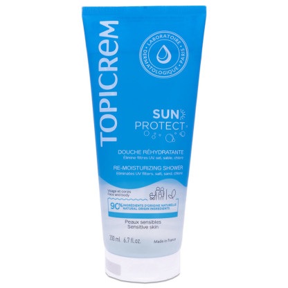 TOPICREM SUN PROTECT DOUCHE RÉHYDRATANTE 200ML est disponible en vente en ligne à prix discount sur Pharmashopdiscount.