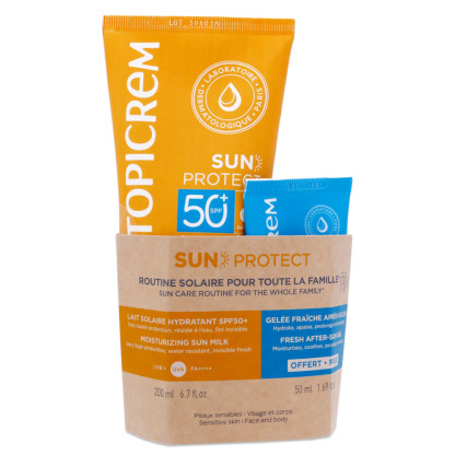 TOPICREM SUN PROTECT SPF50+ LAIT SOLAIRE HYDRATANT + GELÉE APRÈS SOLEIL