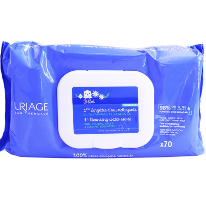 Uriage Bébé Toilette 1ères Lingettes d'Eau Nettoyante x70, en vente en ligne, sur le site de votre parapharmacie à prix discount. Découvrez les lingettes d'eau nettoyante Uriage Bébé Toilette, spécialement conçues pour la peau délicate des tout-petits.
