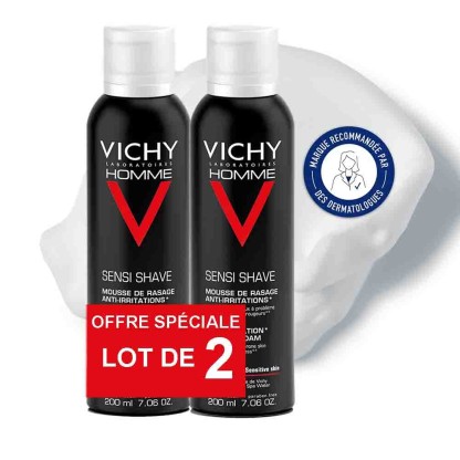Vichy a conçu une gamme de soins spécialement formulés pour répondre aux besoins spécifiques des peaux masculines avec des produits alliant efficacité optimale et ultra haute tolérance cutanée. La mousse à raser anti-irritations, à la texture généreuse qui offre une glisse optimale de la lame au moment du rasage, est spécialement formulée pour faciliter le rasage des peaux sensibles à problèmes : poils incarnés, boutons… Sa composition associe du calcium à de la vitamine C glucosylée et de l’acide salicylique pour préserver le film hydrolipidique de la peau et éviter les irritations liées au rasage. La peau est protégée et hydratée, elle est douce et confortable.