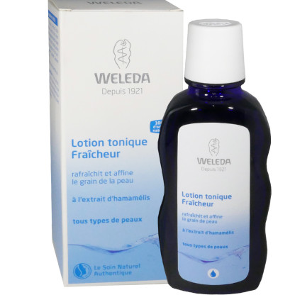 Le laboratoire WELEDA conçoit des compléments alimentaires, produits cosmétiques, dispositifs médicaux et médicaments à base d’ingrédients naturels pour le bien être de toute la famille. La lotion tonique fraîcheur de WELEDA à base d’hamamélis va parfaire le démaquillage et nettoyer le visage tout en respectant l’équilibre de la peau. Elle exfolie tout en douceur la peau pour éliminer les impuretés et les résidus du maquillage et affiner le grain de peau, et redonne de la vitalité et du tonus. Après le soin, la peau propre retrouve vitalité, fraîcheur et éclat.