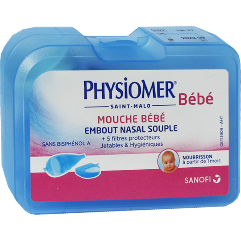PHYSIOMER c’est une recette originelle inchangée depuis 25 ans : 100 % d’eau de mer naturelle non diluée, sans conservateur, stérile, au pH optimal totalement adapté à l’hygiène nasale de toute la famille. Le mouche bébé PHYSIOMER est l’allié incontournable des parents pour soulager bébé de façon sereine lorsque son nez est encombré. Les embouts jetables ultra-souples du mouche bébé de forme anatomique sont conçus pour s’adapter parfaitement aux narines des petits. Chaque embout à usage unique garant d’une hygiène optimale, est doté d’un filtre absorbant protecteur pour retenir le mucus de bébé. Le corps transparent du mouche bébé permet de visualiser la quantité de mucus aspiré. Pratique par son étui, il permet d’emporter partout avec soi le mouche bébé et ses embouts pour le garder toujours propre. Le mouche bébé PHYSIOMER est entièrement lavable et réutilisable.