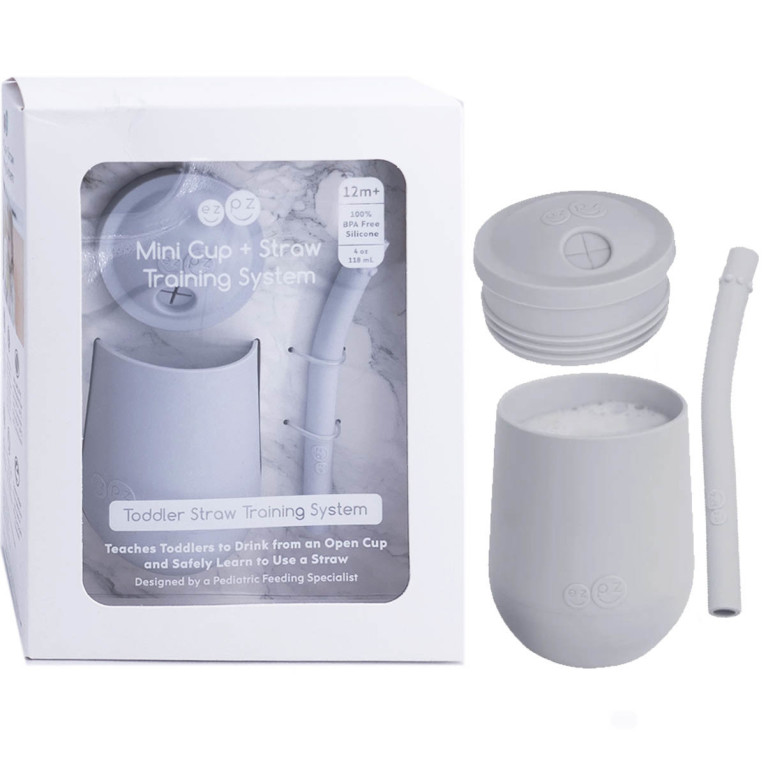 EZPZ MINI CUP AVEC COUVERCLE & PAILLE GRIS CLAIR