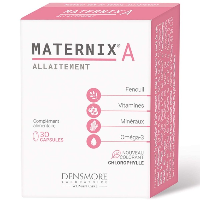 Maternix A Allaitement du laboratoire DENSMORE, le complément alimentaire composé de plantes et de vitamines, en capsules, dans votre parapharmacie en ligne à prix discount.
