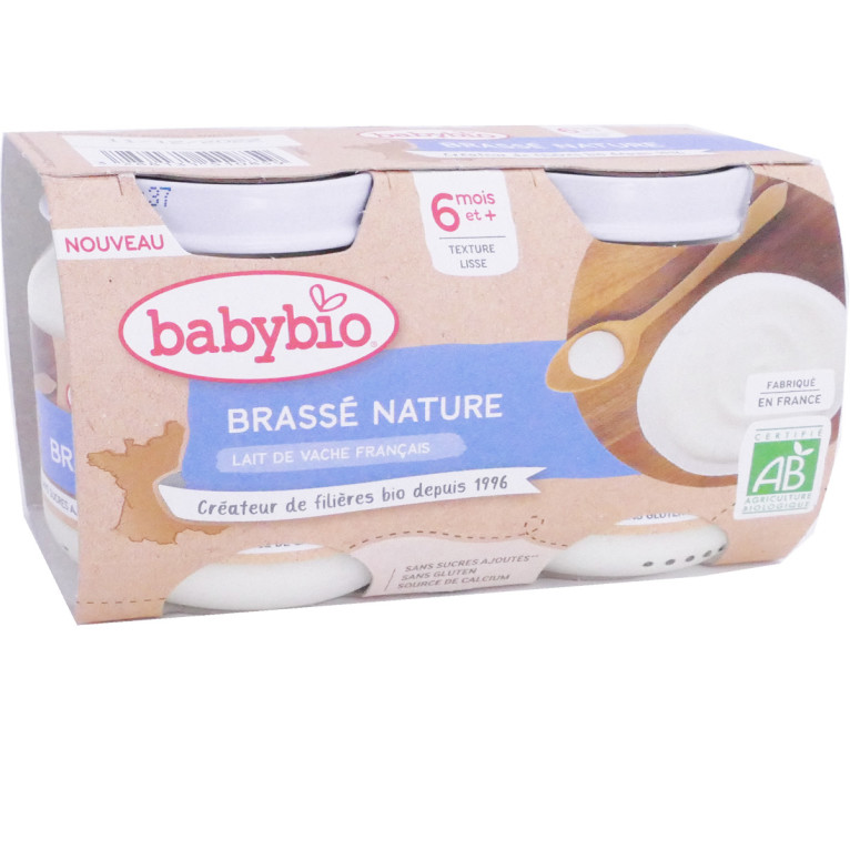 Les Petits pots Brassé Nature de BABYBIO, un bon dessert ou goûter à utiliser chez les tout-petits à partir de 6 mois pour commencer à diversifier leur alimentation tout en douceur. Nature