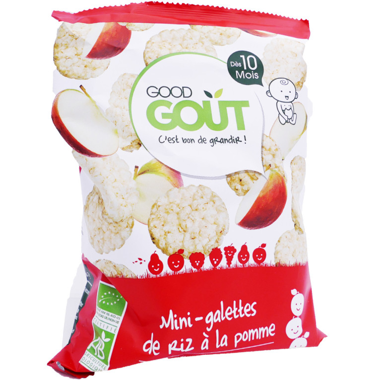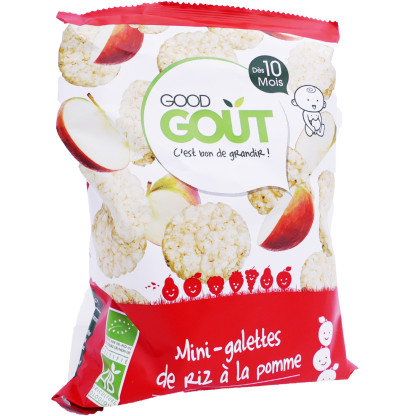 Découvrez la nouvelle marque française d’alimentation biologique sans produits chimiques ni pesticides ni OGM, à base de fruits et de légumes savoureux : GOOD GOUT. Spécialisée dans la conception de produits délicieux, GOOD GOUT vous assure qualité nutritionnelle, saveurs naturelles et plaisirs gustatifs pour régaler les enfants dès le plus jeune âge ! Lorsque vient l’âge de la diversité alimentaire, Bébé est avide de nouvelles saveurs et de textures différentes. Les Mini-galettes de riz qui ne contiennent pas de gluten, régaleront les papilles des plus jeunes ! Le riz croquant et le jus de pomme pour une touche acidulée plairont aux enfants. En mini-sachet léger, les galettes s’emportent partout avec soi pour répondre aux envies gourmandes des petits ! Sans sucres ajoutés