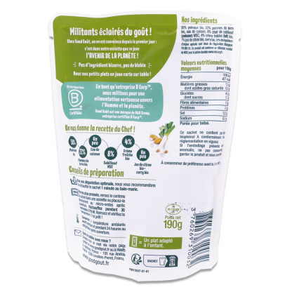 Pour une dégustation optimale, nous vous recommandons de réchauffer le sachet 1 minute au bain-marie. Pour les plus pressés, versez le contenu du sachet dans une assiette ou placez-le directement au micro-ondes après ouverture. Réchauffez pendant 30 secondes à 750W. Remuez et vérifiez la température. C'est prêt !