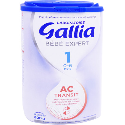 GALLIA spécialiste du lait infantile depuis 60 ans, développe en collaboration avec des spécialistes de la petite enfance (pédiatres, nutritionnistes…) une large gamme de laits infantiles se rapprochant au mieux du lait maternel, pour offrir aux bébés une alimentation adaptée à leur développement, prévenir ou traiter les petits troubles nutritionnels des nourrissons. BEBE EXPERT AC TRANSIT 1er âge de GALLIA est spécialement formulé pour l’alimentation des nourrissons de 0 à 6 mois au système digestif encore immatures qui présentent des troubles digestifs avec des coliques et/ou constipations persistantes. Ce lait contient des protéines partiellement hydrolysées et des fibres alimentaires de type FOS/GOS qui va permettre la prise en charge nutritionnelle des coliques et constipations.