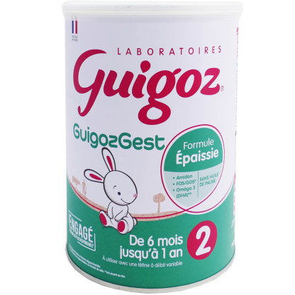 Depuis plus d’un siècle, Guigoz accompagne le développement harmonieux des bébés et la sérénité de leur maman en proposant des laits infantiles de qualité, conçus pour apporter une réponse adaptée à tous les besoins nutritionnels et/ou digestifs des tout-petits. GUIGOZGUEST est formulé sans huile de palme et est composé de Fibres FOS/GOS et de DHA. Le lait 2ème âge GUIGOZGUEST est spécialement formulé pour apporter tous les éléments nutritifs essentiels à la croissance des bébés de 6 mois à 1 an, en complément d’une alimentation diversifiée. Ce lait épaissis au nouveau procédé OPTIPRO apporte des protéines en dose suffisante (pour ne pas surcharger l’organisme des bébés), du fer, des vitamines A, C et D ainsi que des acides gras essentiels qui vont non seulement contribuer au développement normal du cerveau mais aussi veiller au bon fonctionnement du système immunitaire.