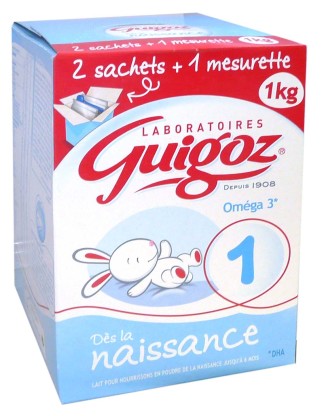 Depuis plus d’un siècle, Guigoz accompagne le développement harmonieux des bébés et la sérénité de leur maman en proposant des laits infantiles de qualité, conçus pour apporter une réponse adaptée à tous les besoins nutritionnels et/ou digestifs des tout-petits. Le lait 1er âge de Guigoz est spécialement formulé pour apporter tous les éléments nutritifs essentiels à la croissance des bébés de 0 à 6 mois qui ne présentent pas de problèmes digestifs particuliers. Ce lait apporte des protéines en dose suffisante pour ne pas surcharger l’organisme des nourrissons, du fer, des vitamines, des minéraux, des acides gras polyinsaturés à chaînes longues (AGPI-CL), et du DHA de la famille des Oméga 3 qui favorise le développement normal neurosensoriel des tout-petits. L'OMS recommande l'allaitement au sein pendant les six premiers mois suivant la naissance.