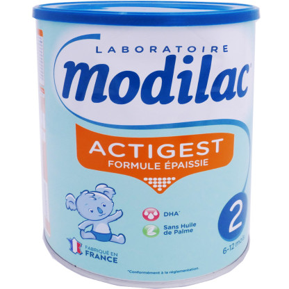 MODILAC est une marque de lait infantile crée en 1984 par le laboratoire SODILAC, spécialement conçue pour offrir un large choix de laits s’approchant au mieux du lait maternel, et répondre aux différents besoins nutritionnels des nourrissons pour accompagner leur croissance de façon harmonieuse. Le lait en poudre 2ème âge Actigest de MODILAC est formulé pour apporter tous les éléments nutritionnels essentiels au développement des bébés. Une formule sans huile de palme avec une teneur en lactose réduite à base de DHA, un acide gras essentiel de la même famille que les Omégas 3. Un lait épaissi conçu pour limiter les régurgitations et pour favoriser le développement d’une flore intestinale protectrice.