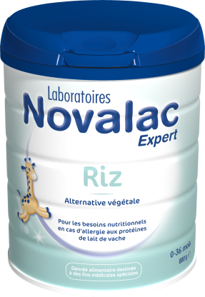 NOVALAC, marque de nutrition infantile distribuée exclusivement en pharmacie et parapharmacie, propose des laits infantiles d’un type nouveau (Nova-Lac) développés avec des pédiatres, ingénieurs et pharmaciens, afin d’accompagner de façon harmonieuse la croissance des nourrissons et apporter une solution adaptée à chacun de leur besoin. Chaque produit Novalac fait l’objet de plus de 500 contrôles stricts afin de garantir une qualité optimale et une sécurité absolue. NOVALAC Riz 0-36 mois, est un lait de riz qui va permettre de couvrir tous les besoins nutritionnels en cas d'allergies aux protéines de lait de vache et contribuer à la croissance de bébé jusqu’à 36 mois. Un lait aux protéines de riz hydrolisées sans gluten et sans lactose à prendre après avoir demandé conseil à un professionnel de santé qualifié dans le cas de bébés prématurés ou de faibles poids. convient pas aux enfants atteint de malabsorption du glucose-galactose.