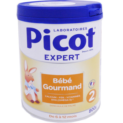 Depuis 1896, PICOT développe des produits de nutrition infantile de haute qualité et propose des gammes complètes de laits infantiles, céréales instantanées, jus de fruits… issus d’un savoir-faire de tradition, pour participer à la croissance harmonieuse des bébés et assurer la tranquillité des mamans. Le lait en poudre BEBE GOURMAND 2 sans huile de palme, est spécialement conçu pour répondre aux besoins des bébés gourmands, difficilement rassasiés. Ce lait est digéré plus lentement et permet de réduire la sensation de faim grâce à sa formule épaissie, tout en apportant les éléments essentiels à la croissance de bébé.