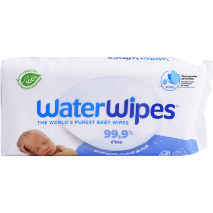 Ces lingettes WATERWIPES au conditionnement ultra-pratique à utiliser dans n’importe quelle circonstance, sont le soin de toilette indispensable que toute maman soucieuse du confort de son bébé doit posséder. Elles éliminent en douceur les impuretés du corps, siège ou visage de bébé tout en protégeant sa peau des irritations, rougeurs, apparition de problèmes de peau (atopique, eczéma,…). Leur formule ultra douce et naturelle, sans ingrédients chimique, contient uniquement de l’eau purifiée (99,9%) et de l’extrait de pépin de pamplemousse (0,01%), pour apaiser la peau fragile du nourrisson, l’hydrater et l’adoucir. 100% biodégradable et sans plastiques, les lingettes WATERWIPES sont compostables.