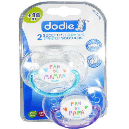DODIE SUCETTES ANATOMIQUES +18 MOIS "MAMAN ET PAPA" LOT DE 2