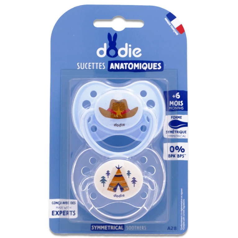Sucette anatomique silicone +6 mois de DODIE discount, la sucette qui apaise et rassure les bébés de + de 6 mois dans votre parapharmacie à prix discount, tout en respectant le développement de la bouche. Motifs et coloris selon disponibilités
