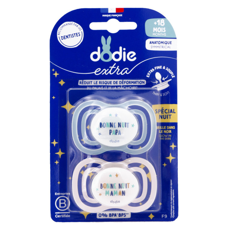 DODIE EXTRA 2 SUCETTES ANATOMIQUES NUIT 18 MOIS+