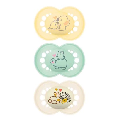 MAM ORIGINAL 3 SUCETTES SILICONE +18 MOIS en vente en ligne, sur le site de votre parapharmacie à prix discount, est l'accessoire idéal pour apaiser votre bébé tout en respectant son développement naturel.
