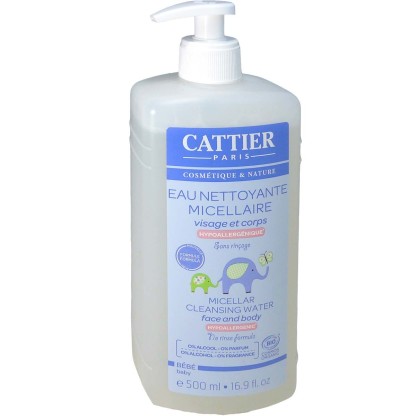 L’Eau nettoyante micellaire de CATTIER discount, le soin d’hygiène très doux dans votre parapharmacie à prix discount, qui nettoie au quotidien tout en douceur le visage et le corps des bébés.