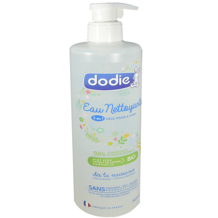 Les produits DODIE offrent aux bébés les meilleurs produits pour leur nutrition et leur confort et des produits aux mamans pour leur confort d'allaitement, de conservation et de stérilisation. L’eau nettoyante 3 en 1 riche en eau d’hamamélis bio, et extraits de coton et aloe vera bios nettoie tout en douceur, protège, hydrate et apaise. De très haute tolérance cutanée et oculaire, la peau de bébé sera respectée sans irritation ou dessèchement. Sa texture fraîche et non collante laissera la peau de bébé douce et délicatement parfumée. Pratique il n’est pas nécessaire de rincer. La peau de bébé est propre, apaisée de tout inconfort et fraîche.