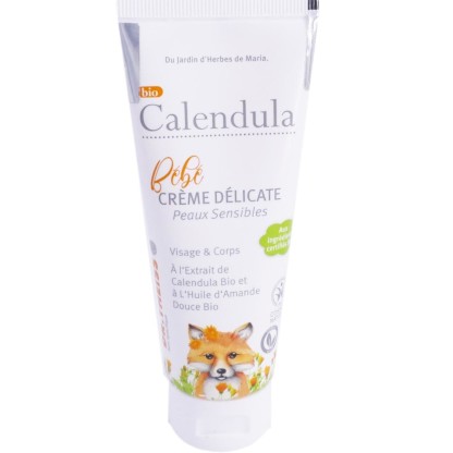 La crème délicate visage et corps , est spécialement conçue pour hydrater et protéger la peau de bébé. Sa formule délicatement parfumée est composée d’huile d’amande douce bio apaisante et adoucissante et d’extrait de fleur de calendula cicatrisant. Des ingrédients certifiés bio et judicieusement sélectionnées pour protéger le dessèchement cutané et nourrir les peaux fragiles des plus petits.
