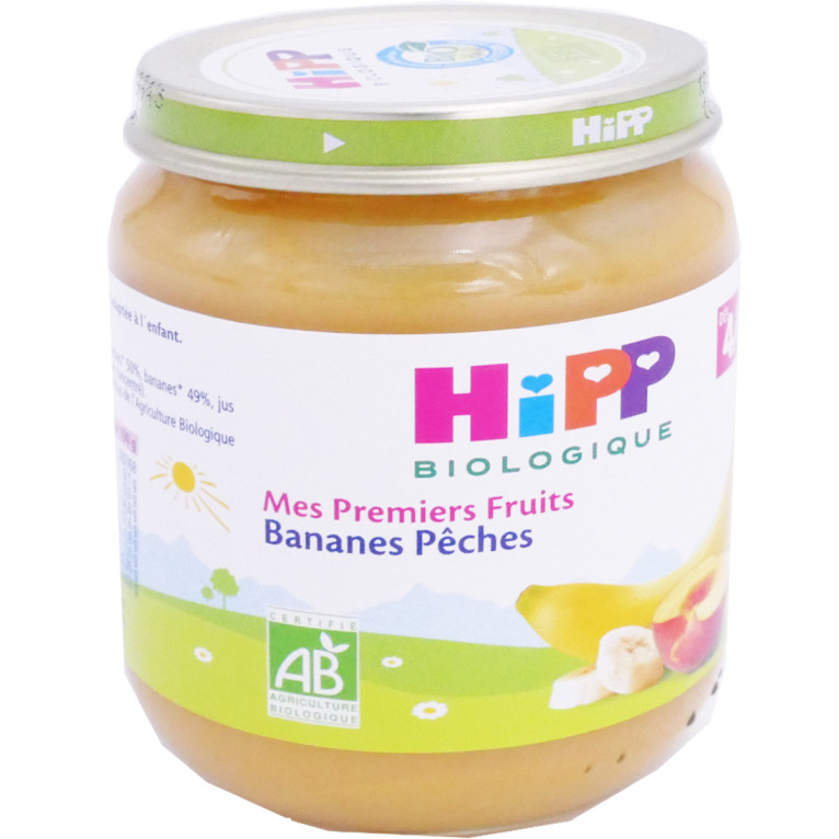 Découvrez la nouvelle marque française d’alimentation biologique sans produits chimiques ni pesticides ni OGM, à base de fruits et de légumes savoureux : HiPP Biologique. Spécialisée dans la conception de produits délicieux, HiPP Biologique vous assure qualité nutritionnelle, saveurs naturelles et plaisirs gustatifs pour régaler les enfants dès le plus jeune âge ! Lorsque vient l’âge de la diversité alimentaire, Bébé est avide de nouvelles saveurs et de textures différentes. Mes Premiers Fruits qui ne contiennent pas de sucres ajoutés, régaleront les papilles des plus jeunes ! A la texture lisse, ils contiennent seulement chacun des fruits naturels et biologiques, qui plairont aux enfants. En petit pot, la purée de Banane et Pêche Bio s’emporte partout avec soi pour répondre aux envies gourmandes des petits ! Sans sucres ajoutés, sans épaississants, sans arômes ajoutés
