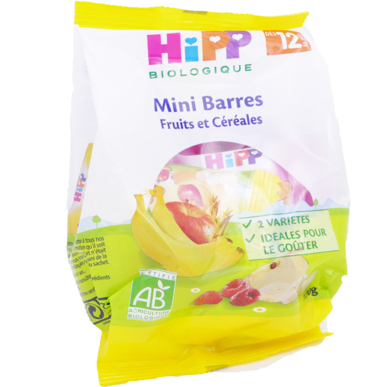 Découvrez la nouvelle marque française d’alimentation biologique sans produits chimiques ni pesticides ni OGM, à base de fruits et de légumes savoureux : HiPP Biologique. Spécialisée dans la conception de produits délicieux, HiPP Biologique vous assure qualité nutritionnelle, saveurs naturelles et plaisirs gustatifs pour régaler les enfants dès le plus jeune âge ! Lorsque vient l’âge de la diversité alimentaire, Bébé est avide de nouvelles saveurs et de textures différentes. Les Barres de fruits et céréales qui contiennent seulement le sucre des fruits, régaleront les papilles des plus jeunes ! Les Barres tendres et fondantes sont idéales pour combler les petites faims dans la journée. Sans sucres ajoutés2 saveurs différentes pour une découverte gourmande : Pommes, bananes, céréales ; Pommes, fruits rouges et céréales.
