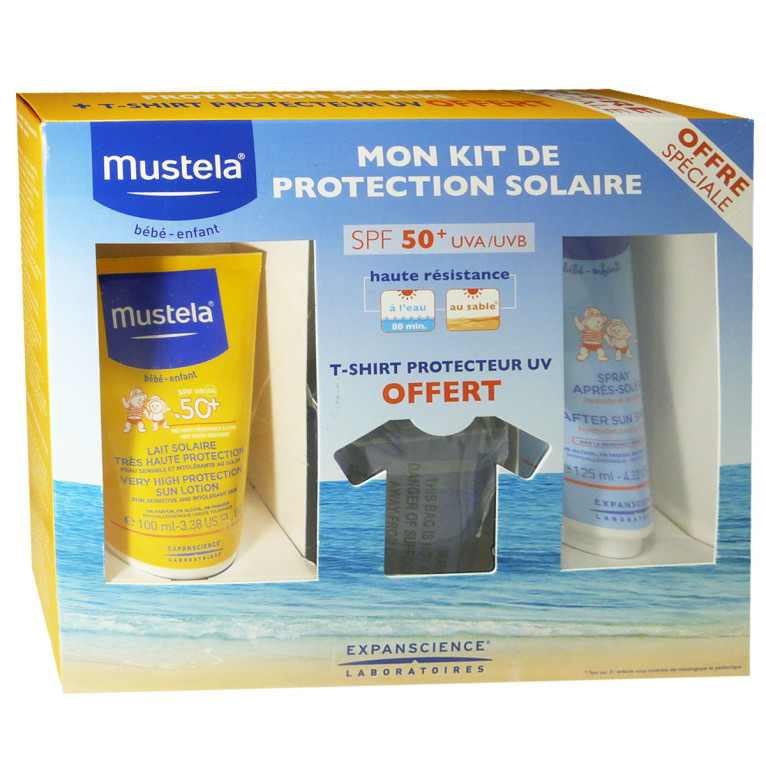 MUSTELA COFFRET LAIT SOLAIRE SPF 50+ 100 ml +APRES SOLEIL 125 ml + T-SHIRT OFFERT