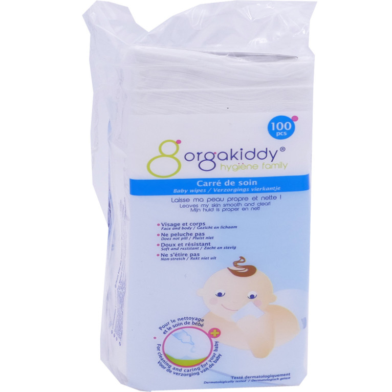 Le laboratoire français ORGAKIDDY développe des produits innovants et pratiques à usage unique pour l’hygiène et le confort des tout-petits et de leurs parents (bavoirs jetables, protège-matelas,…). Les Carrés de soin très doux non tissés, s’utilisent pour la toilette des bébés, démaquiller, ou lors de petits soins cutanés. Très résistants en viscose et polyester, ils nettoient la peau tout en douceur, éliminent les salissures et impuretés sur la peau et les fesses. Sans pelucher et sans s’étirer, les carrés de soin respectent la peau fragile de toute la famille pour une peau parfaitement nettoyée.
